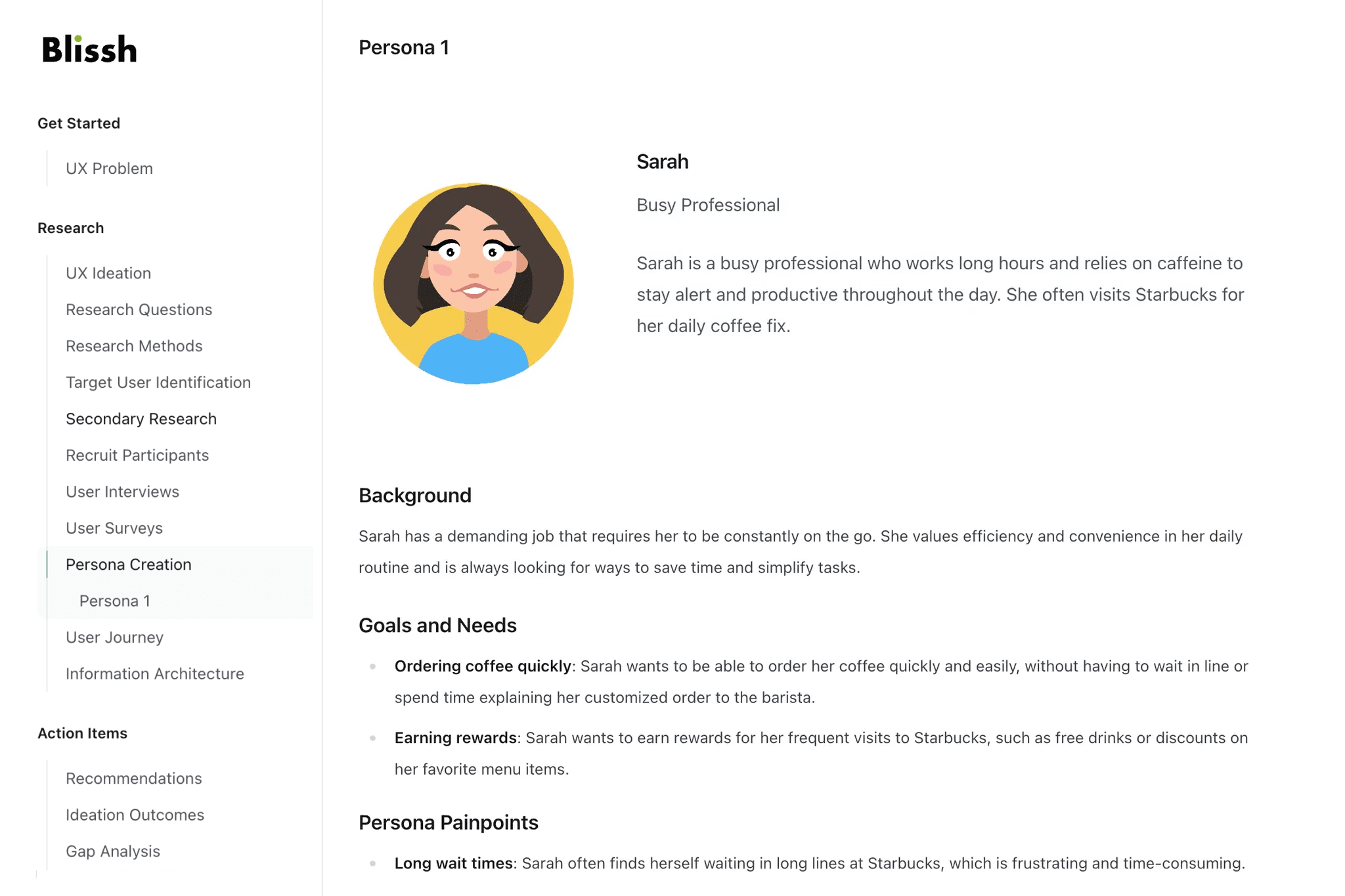 I was blown away by the detailed user personas and journeys the app generated from our initial idea. It provided insights we hadn’t considered and enriched our UX strategy tenfold!